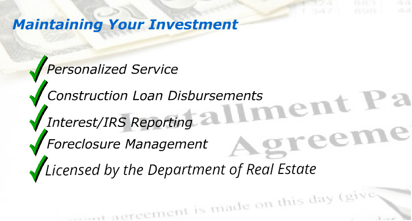 Placer Lender Services uses a state of the art computer system which meets all requirements of trust accounting and reporting for the Department of Real Estate and is updated as new regulations occur. Placer Lender Services is Bonded and licensed by the Department of Real Estate with trust funds held in an FDIC insured Bank.